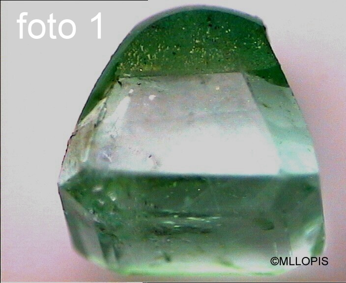 Foto 1 Pegamento de color verde en el culet de este berilo incoloro