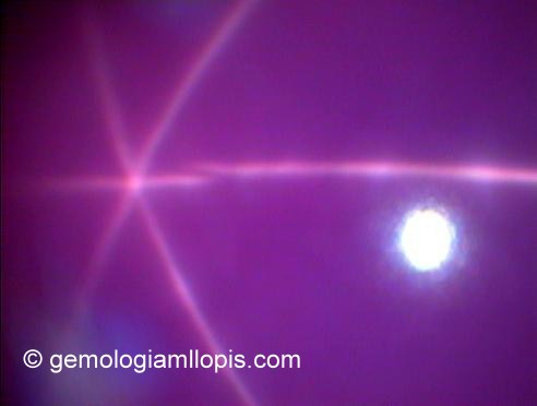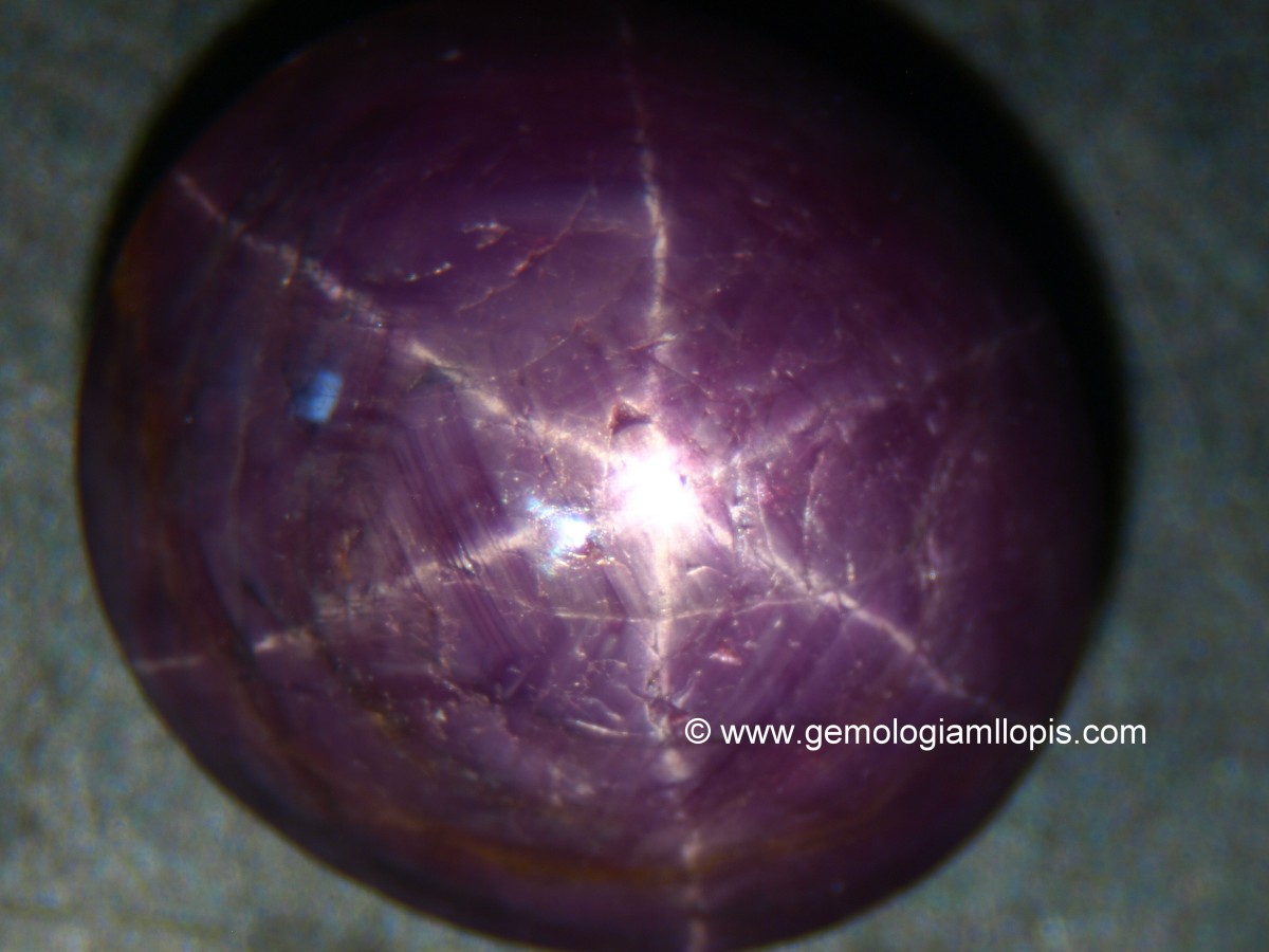 Cuando la gemas tienen inclusiones fibrosas muy finas y orientadas paralelamente a más de una cara del cristal , la luz se refleja en ellas y produce dos o más halos que se cruzan formando una estrella. Este efecto se denomina asterismo y lo presentan algunas gemas. El asterismo se ve mejor cuando la gema se ilumina con una fuente de luz puntual. Vamos a ver algunos ejemplos.