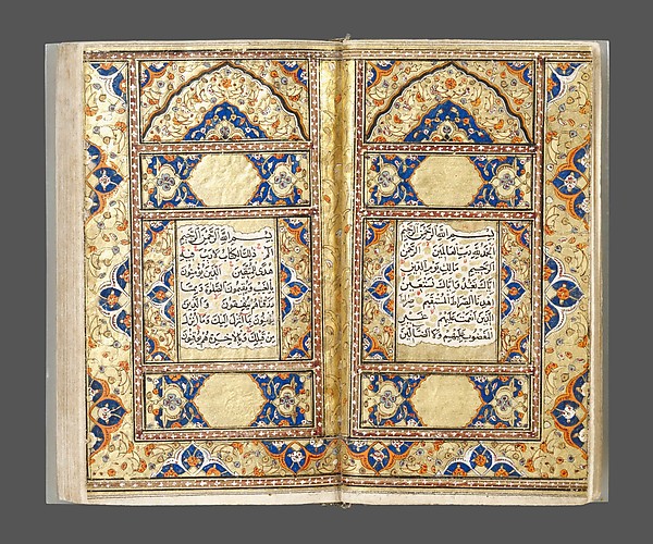 Fascinante es este manuscrito Qur’an datado en los años 1674-1675 D.C. de apenas 10 x 6 cm de tamaño con tintas de colores y oro, pero lleva una cubierta de oro forrada de diamantes rubies y esmeraldas en una magistral composición.