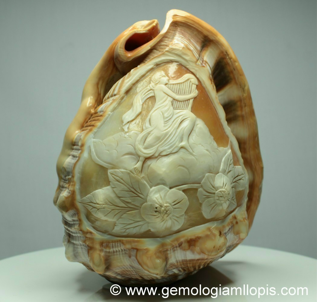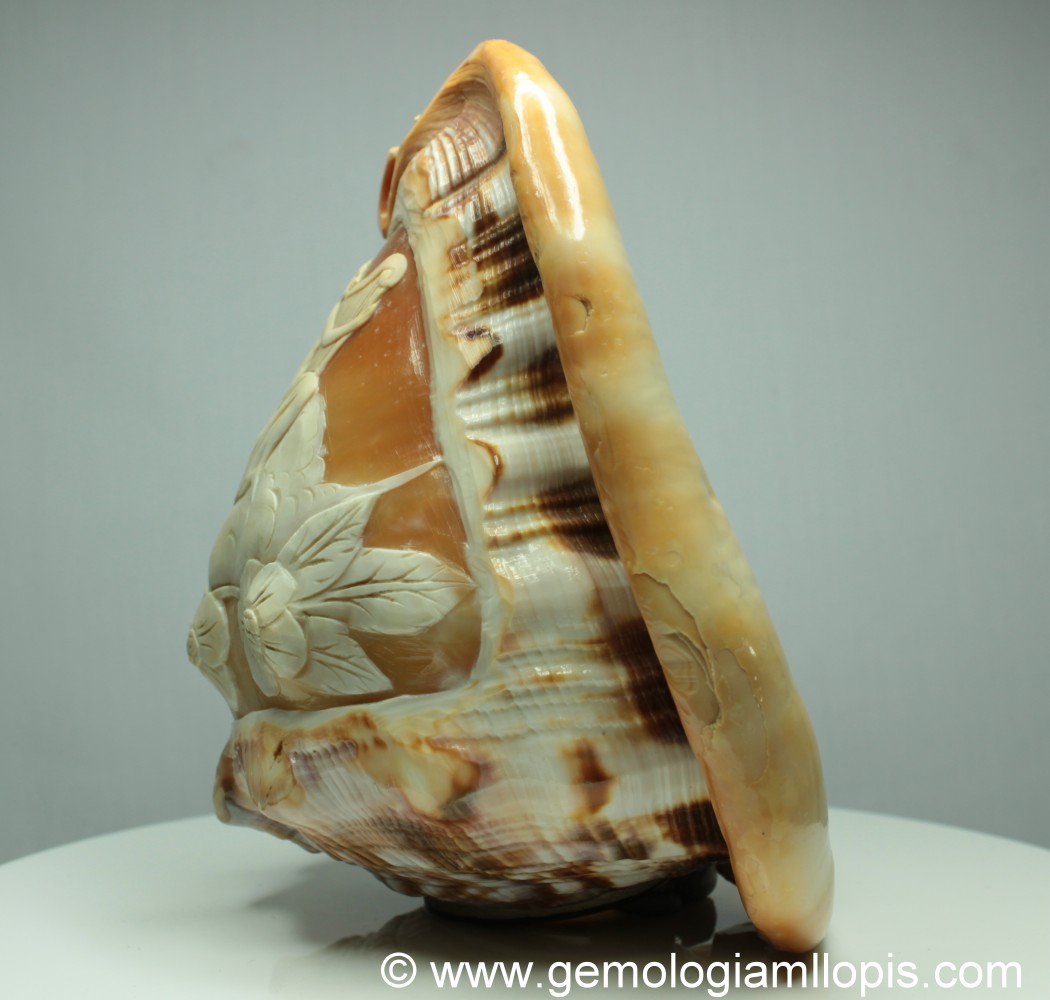 Con este artículo pretendemos enseñar como se fabrica artesanalmente un camafeo de concha. Como veis se tallan principalmente de la caracola del molusco Strombus, en especial de la variedad Strombus Giga. Se trata de crear figuras que mediante el tallado con buriles y otras herramientas punzantes van apareciendo mediante el contraste de los colores de las diferentes capas de la concha. Según la profundidad con que haga el tallador los cortes y buriladas en la concha, conseguirá mas contraste de color.