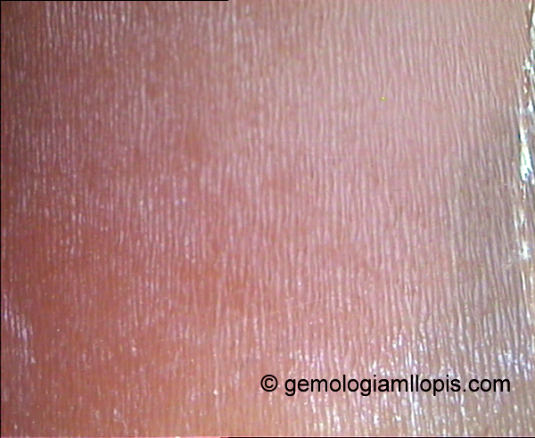 Los camafeos son muy imitados con plásticos y resinas, pero ninguno de ellos consigue la textura y la apariencia que tiene la concha vista simplemente con una lupa 10x. El aspecto es estriado sinuoso, o visto a mas aumentos también se le denomina llamas, o llameante.