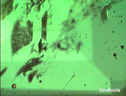 Hace ya algún tiempo me pasó un caso curioso. La mujer de un abogado cliente mio, que me encarga trabajos de valoraciones de joyas de sus clientes, me contrató para que la acompañara a la casa de una amiga suya. Al parecer la amiga, extrangera afincada en España, viuda ya mayor y con algunos problemas económicos, quería venderle algunas joyas y así hacer un poco de dinero para dejar las cosas claras en España y marcharse a su país los Estados Unidos. Entonces, mi labor, en la que la señora estaba de acuerdo, era revisar las joyas, valorarlas y que la transacción fuese sastisfactoria para ambas partes. Me presenté con mi clienta en casa de la señora, me llevé mi maletín con los intrumentos gemológicos mínimos para hacer una revisión «de campo». La anécdota surgió con un broche art decó, que llevaba una «esmeralda» central muy bonita, de talla esmeralda y de aproximadamente unos 7,0 carats, y estaba orlada de diamantes de talla brillante antigua en diferentes tamaños engastados con granos y con marcos grafilados. Cuando observé la «esmeralda» con la lupa veo con admiración unas burbujas junto con otras inclusiones y fisuras que presentan aspecto natural, lo raro eran las burbujas. Estas aparecian en un solo plano cuando enfocaba con la lupa. Después comprobé el índice de refracción y ¡bingo! , me daba el índice de refracción del cuarzo 1,544 -1,552, ya que el de la esmeralda es 1,576-1,582.