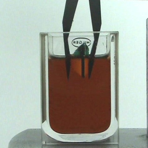 No se podía ver el filetín porque al estar engastada en chatón este quedaba camuflado. Lo que me llamó la atención a primera vista fue su color, no es el verde de la esmeralda colombiana, verde azulado, ni tampoco el de las brasileñas que tira un poco al verde espinaca, pero esa observación por si misma no es suficiente para identificar que se trata de un doblete, es decir dos partes de cuarzo cristal de roca incoloro, con las inclusiones propias de él y un plano de unión formado por una lámina de vidrio de color verde, que por refracción da el aspecto de que toda la piedra sea de color verde. Era un verde bonito, mas parecido al de las esmeraldas de Zambia.