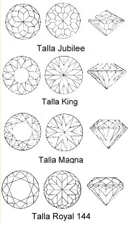 Variaciones de la talla Brillante son la Talla Jubilee, Talla King, Talla Magna, Antigua Europea y Royal 144, Brasileña entre otras.
