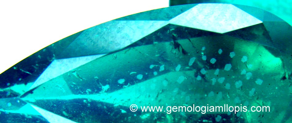 Recientemente, después de no saber que hacer, nos llegaron cuatro piedras de las comercializadas como «esmeralda soudé» , las cuales habrían colocado,  (me imagino, pues creo que por vergüenza no me lo dicen) en ultrasonidos y claro se han despegado las partes y produce pequeñas lagunas o planos de vacío.