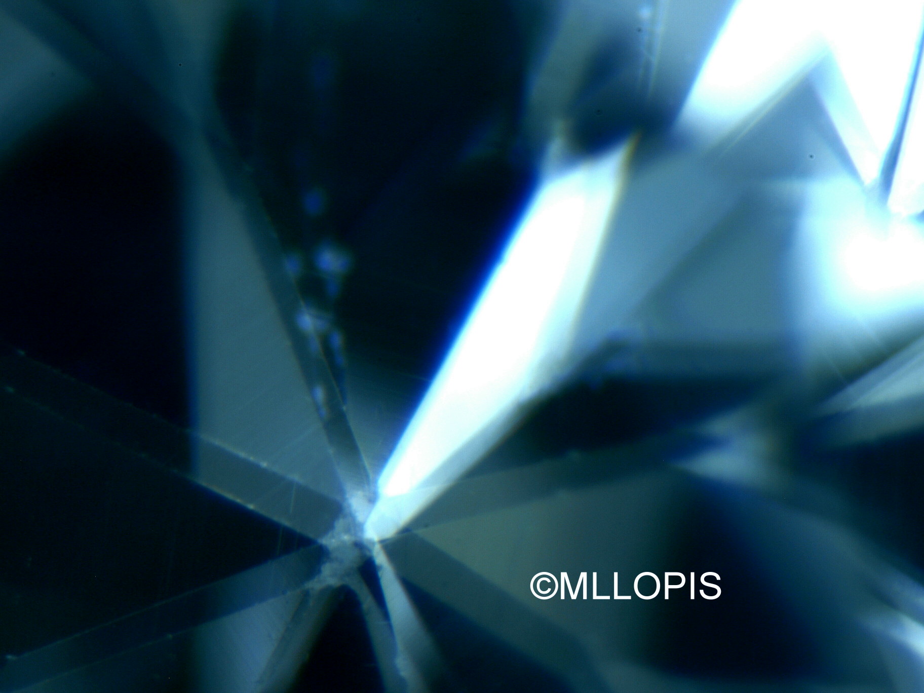 En un circón incoloro, las imágenes de las aristas de la culata se ven dobles. Esto es impensable en un diamante.