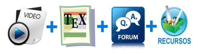 Elementos básicos en formación online, Video explicativo, Texto grafico para leer y entender, Foro para comentar y consultar y Recursos para complementar lo estudiado.