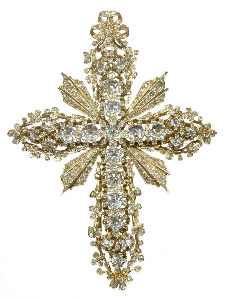 Espléndida cruz pectoral con diamantes, un trabajo de joyero y de engastador espectaculares, amén de que hay que darle un diez al diseñ...