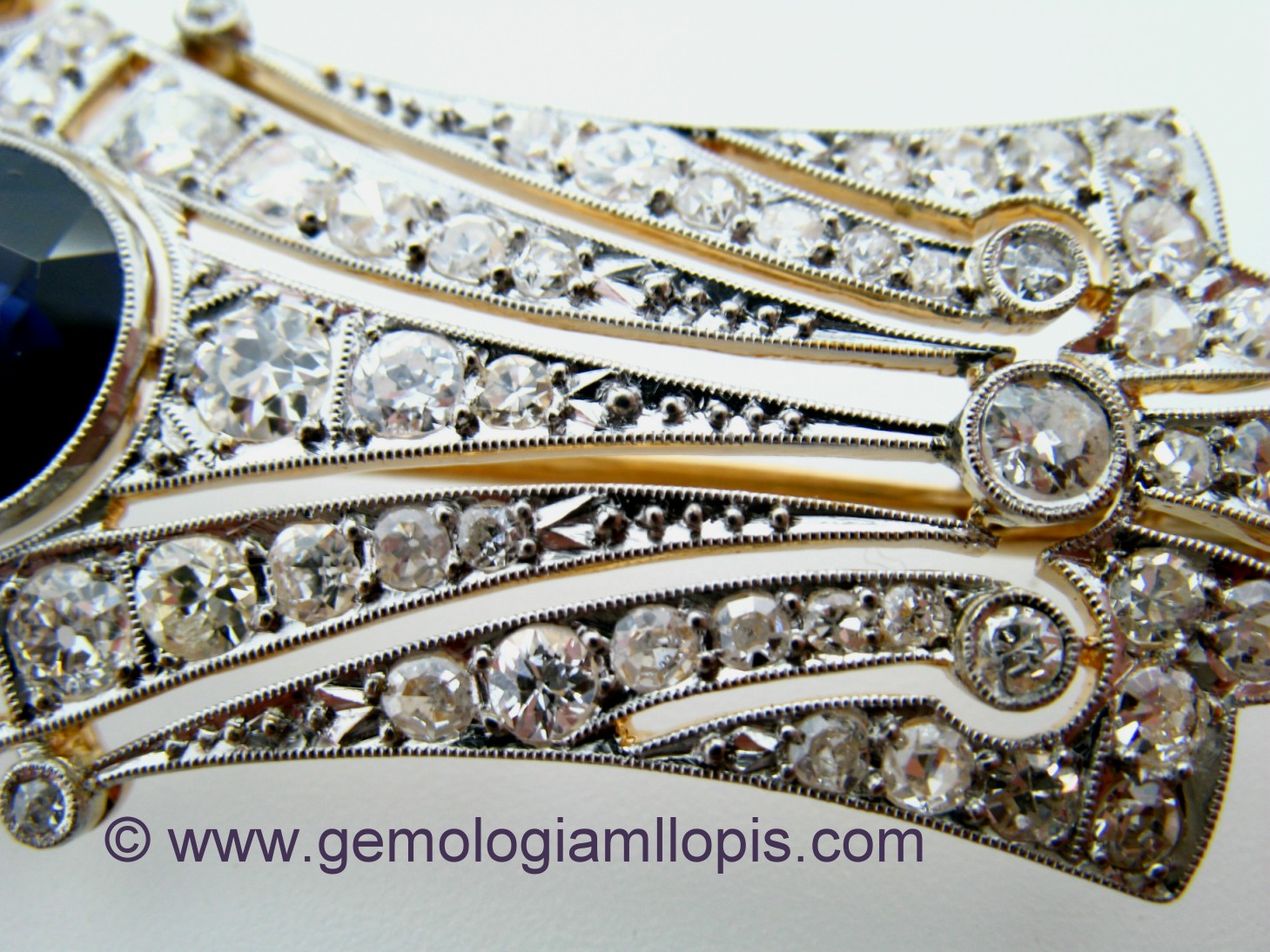 Hemos recibido un broche con diamantes para realizar un informe gemológico y su valoración. Por la talla de las piedras en brillante, 8/8 y 16/16 antiguas, además de su impecable hechura, pensamos que es de aproximadamente 1920.  Nos ha impresionado la calidad del exquisito engastado de granos, además de los bordes de los marcos y monturas grafilados. Perfección en los cortes, correcta simetría, grafilado impecable, etc.  ¿Donde están estos engastadores?, ¿donde están estos maestros? , ¿hay escuelas de engastado?. Es una pena que se pierdan estas artes y que no tengan continuidad. En la actualidad se está abusando de los preengastados en cera, eso no es lo mismo, eso no es artesanía.