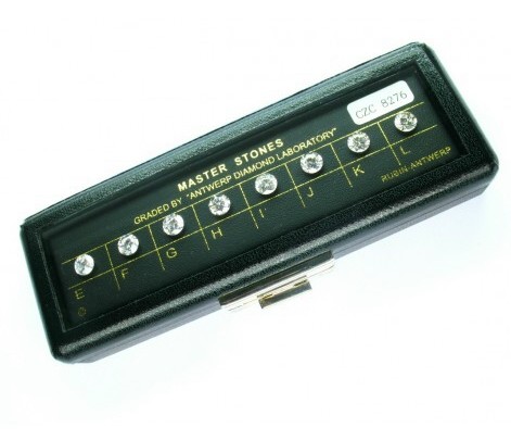 El color de un diamante se juzga mejor por comparación con una patrón de color ya establecido. Este patrón de color puede ser un juego de diamantes previamente graduados en cada una de las categorías, aunque esta función también la puede realizar un juego de circonitas. Los ejemplares de referencia deben ser todos del mismo tamaño: 0,60 ct es un buen tamaño. Sin inclusiones ni fluorescencia, aunque partir de K se admite débil. El diamante a graduar debe situarse en la misma línea que los ejemplares del patrón, ni delante ni detrás para estar a la misma distancia del observador. No es recomendable que el diamante estudiado toque las piedras patrón, se sitúa cerca pero no más de medio centímetro. Y, ni que decir tiene, las piezas del patrón de colores deben estar limpias.