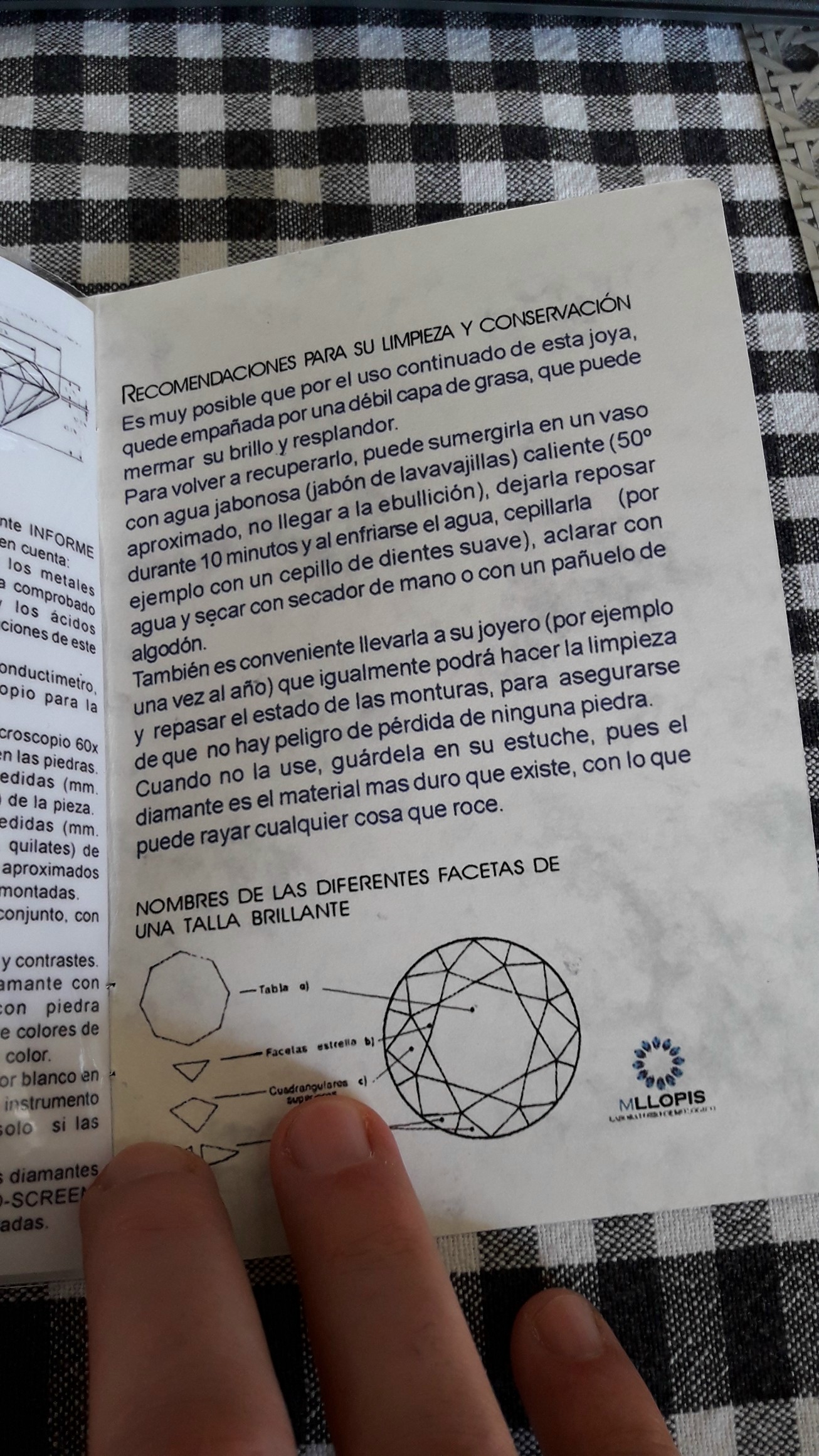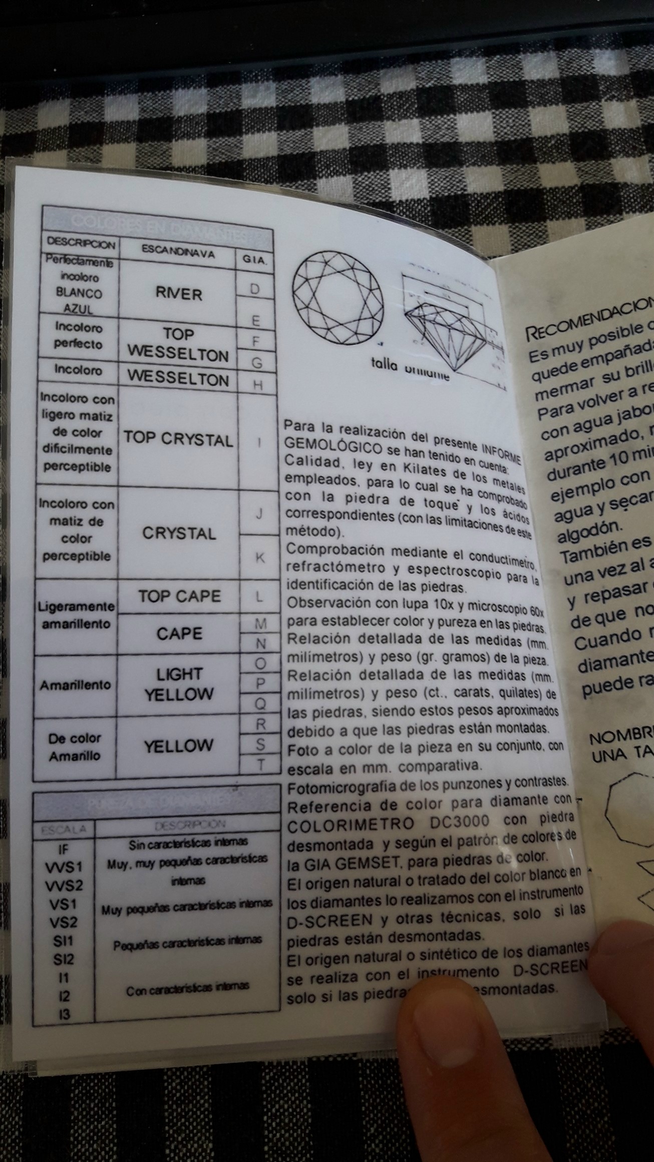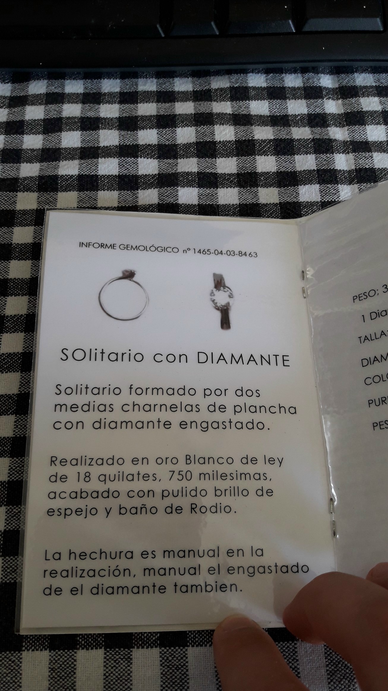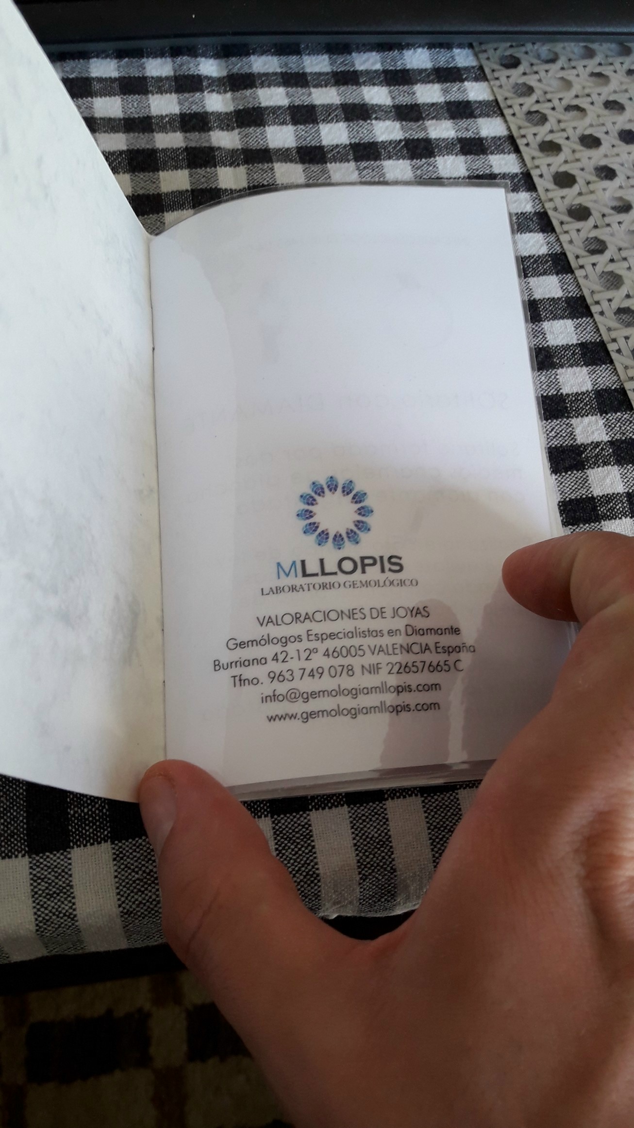 Afortunadamente para un cliente que nos solicita la comprobación de  un certificado de joya, concretamente un solitario de diamante, emitido aparentemente por nuestro laboratorio MLLOPIS.  Se da cuenta de que introduce la numeración del certificado en nuestra página de certificados online, y comprueba que no lo encuentra.  Ante la duda contacta con nosotros y nos manda unas imágenes del certificado para que lo comprobemos nosotros.