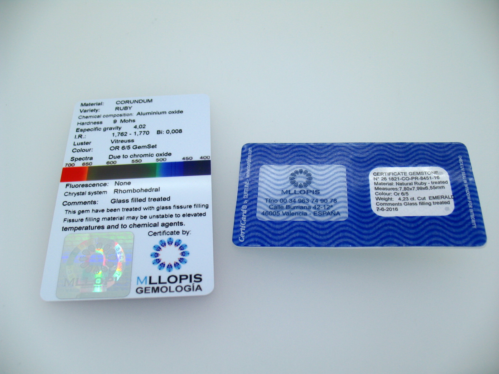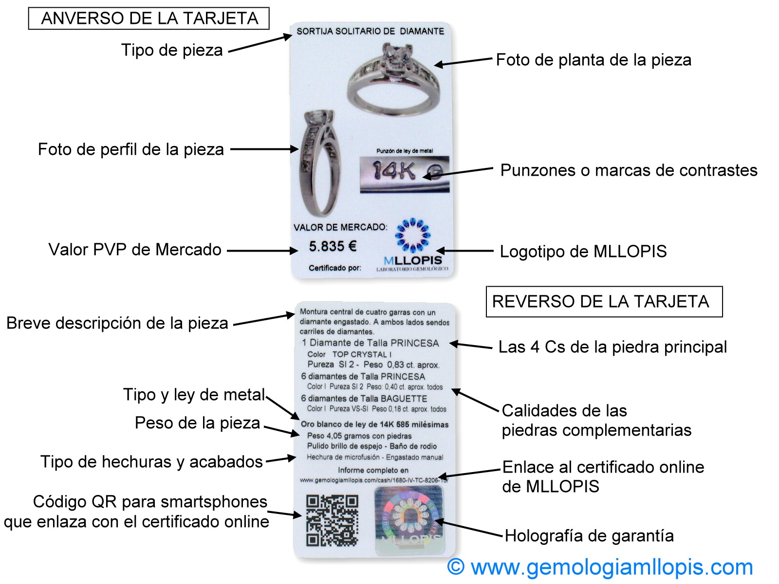 Otros detalles son la holografía de MLLOPIS, que no la lleva. Es nuestra costumbre colocar el mapa de inclusiones o una micrografía de la piedra central importante.