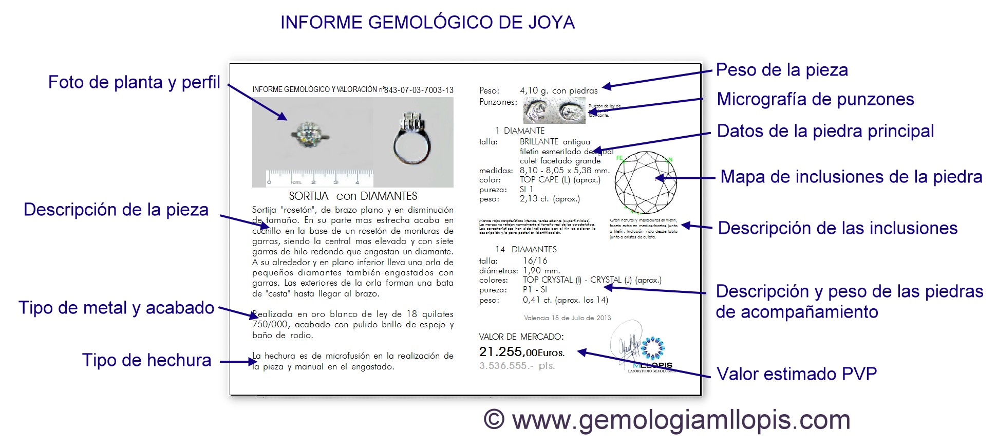 Ejemplo de Informe gemológico y valoración de joya de MLLOPIS