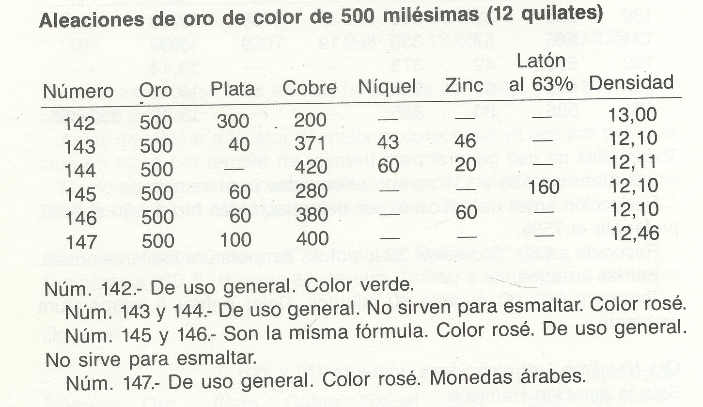 Aleaciones de oro de 500 milésimas (12 quilates). Los Metales en la Joyería Moderna de Jorge Alsina Benavente