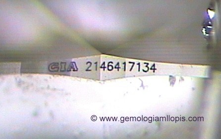 Inscripción en el filetín del diamante del número de certificado GIA del diamante