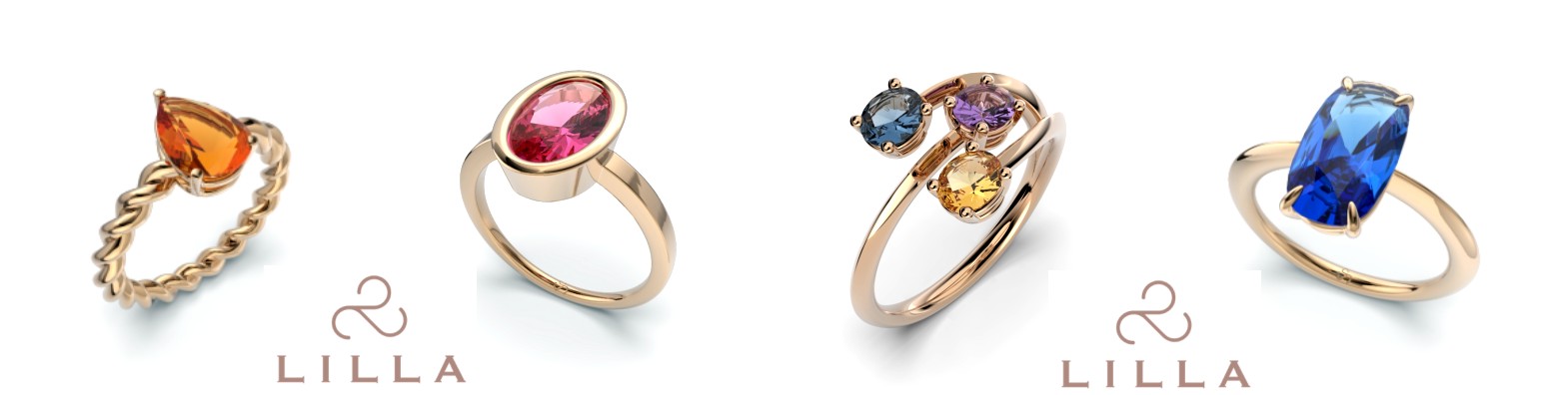 El fundamento de LILLA se basa en que hace propuestas de diferentes diseños en oro blanco, rosa y amarillo, o ruteniado, y una serie de gemas naturales que se pueden ajustar a cualquiera de ellos. La pieza está realizada totalmente a mano, y para ello, de cada pieza expone las fotos de los diferentes pasos en su ejecución, desde el fundido del metal, hasta el engastado. Presenta sus piezas en estuches individuales con serigrafía de su logo y el certificado de calidad realizado por MLLOPIS y personalizado para LILLA.