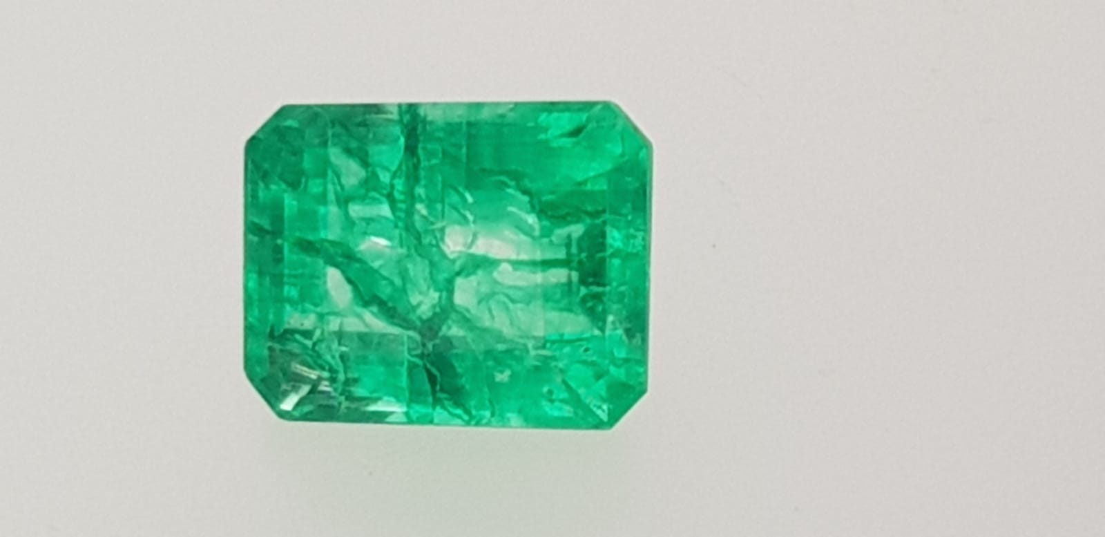 Esta piedra de talla esmeralda, en realidad es un cuarzo cristal de roca craquelado y teñido de verde para imitar a una esmeralda.