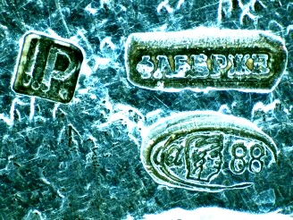 Recientemente con un trabajo de una figura de Fabergé, al ir investigando su autenticidad, es muy agradable y curioso el ir comprobando datos en bibliografía, a saber: el punzón de Fabergé en cirílico, que se hizo alrededor de 1909 en la ciudad de San Petesburgo, que lo realizó el «workmaster» de Fabergé Julius Alexandrovitch Rapopport, que la ley de metal es de 88 «zolotniks».
