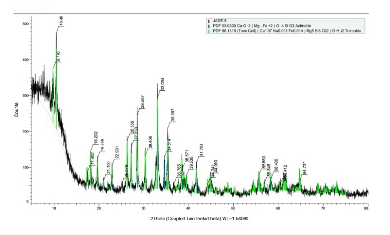 Difractograma de rayos X de una muestra en polvo de actinolita-tremolita