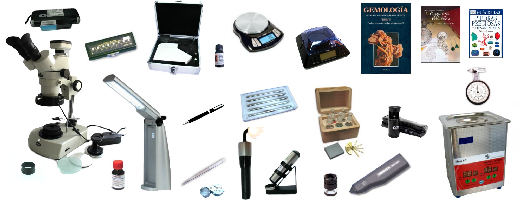 • Diamantes, espectroscopio, gemas, gemología, Gemólogo, ioduro de metileno, jewerly, joya, laboratorio portátil, lapìces de dureza, lupa, microscopio gemológico, multitester, perito, piedra de color, pinzas gemológicas, quilatero portatil, refractómetro, tasación de joyas, téster