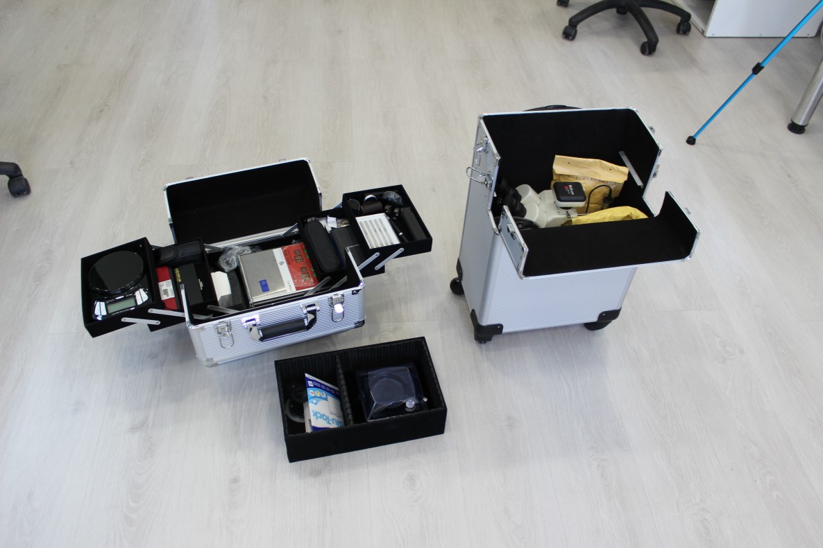 Nuestro cliente, un perito gemólogo tasador, tiene la iniciativa de querer hacer tasaciones de joyas a domicilio. Es por ello que  nos encarga el equipamiento necesario para poder hacerlas. Hemos elegido instrumentos que son de fácil transporte , pero muy prácticos para poder trabajar con ellos.  Desde nuestra experiencia le aconsejamos los instrumentos que podéis ver a continuación y que los hemos acoplado en una maleta trolley muy compacta y elegante, donde es fácil acceder a cada uno de los instrumentos y herramientas: