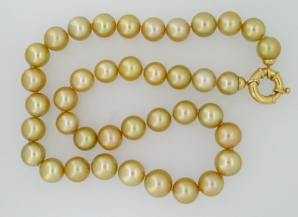 - Golden, procedentes del molusco pinctada maxima de labios dorados, cultivadas principalmente en Filipinas, algunas en Australia, Indonesia y Birmania. A principios de la década del 2000 las perlas golden se empezaron a estimar considerablemente lo que dio pie a que el mercado aceptara también otros colores que hasta entonces no habían tenido mucho atractivo; perlas de colore violeta, lavanda, naranja o rojizo hoy se mezclan en el mismo collar que incluso combinan perlas de agua dulce y salada y que se ofertan por decenas de miles de euros.