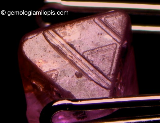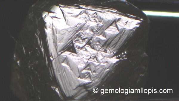 En cualquier caso, los diamantes sintéticos con hábito octaédrico no son habituales porque comercialmente sale más rentable utilizar técnicas que producen combinaciones de cubo y octaedro cuya caras tienen una superficie estriada o dendrítica sin trígonos. Pero si tenemos presente todo lo comentado hasta ahora, cuando nos encontremos con un diamante que tiene trígonos será mejor que realicemos una prueba complementaria antes de dictaminar su origen natural.