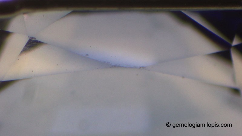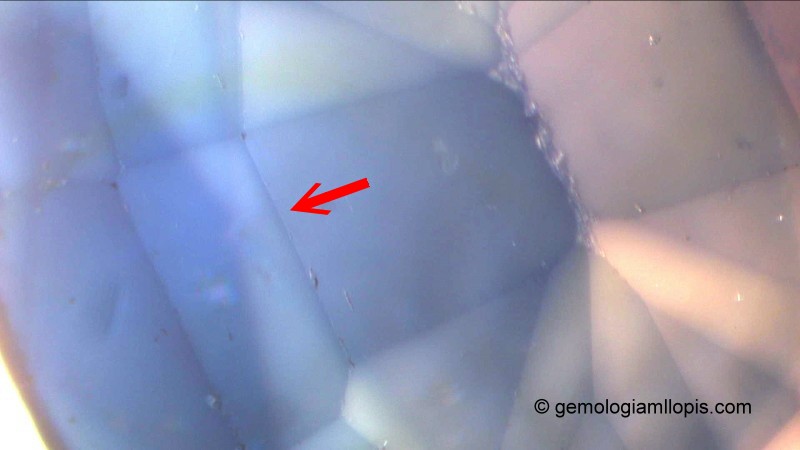 Concentración de color en las aristas formadas por las facetas. Se puede ver sin sumergir la gema en un líquido.