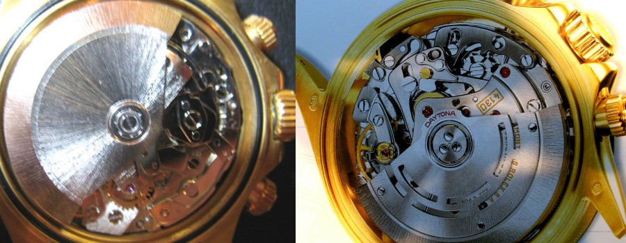 Imagen de la izquierda máquina falsa, la imagen de la dferecha corresponde a un Rolex Daytona auténtico