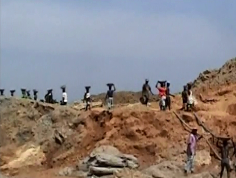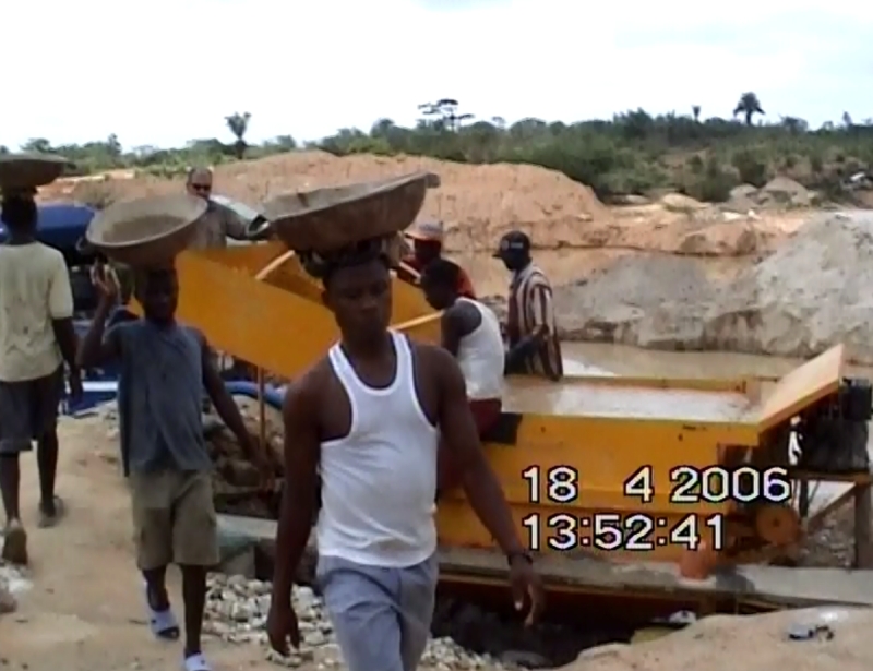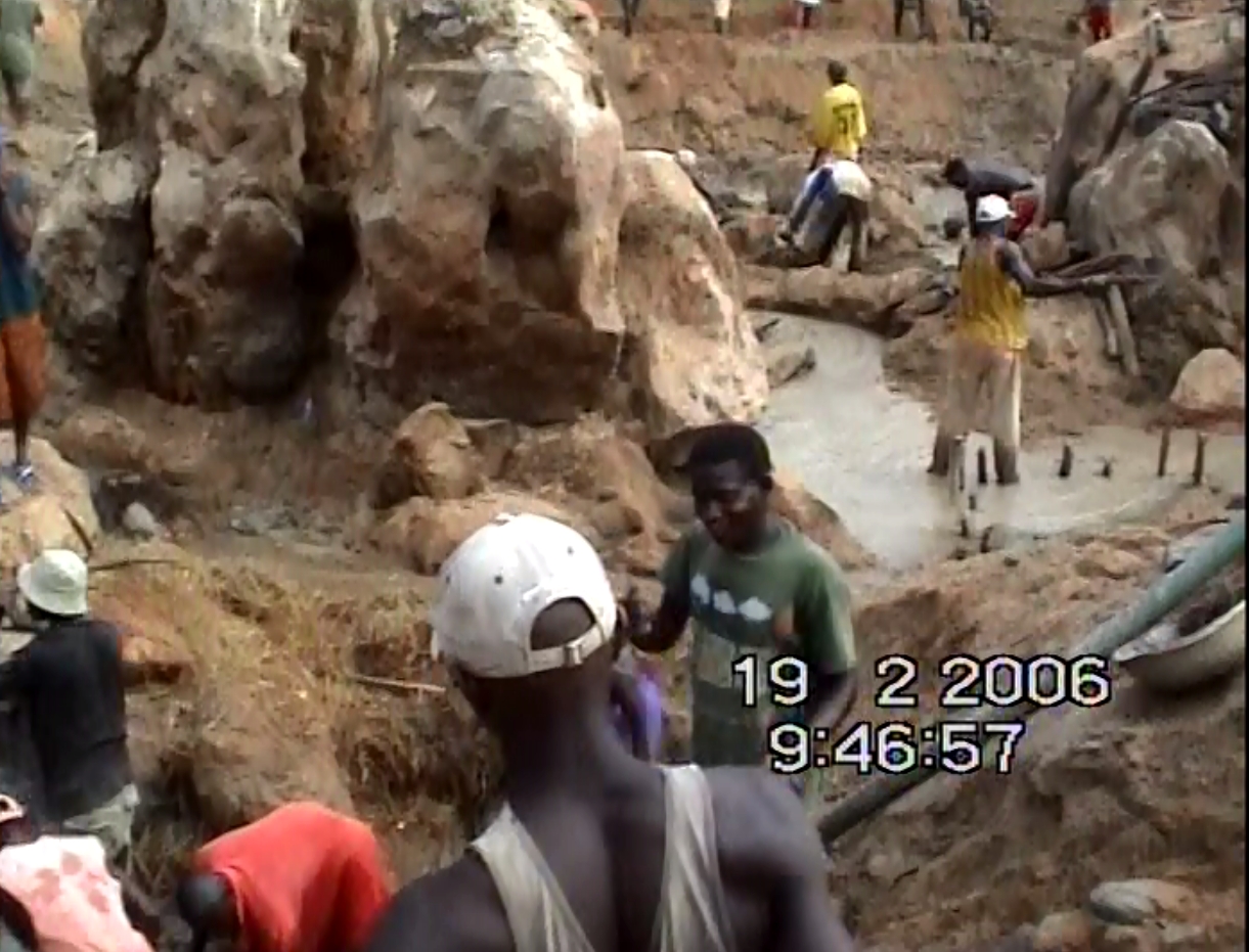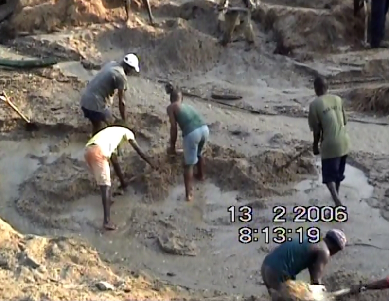 Mina de diamantes en Sierra Leona. Las condiciones de trabajo son bastantes precarias.