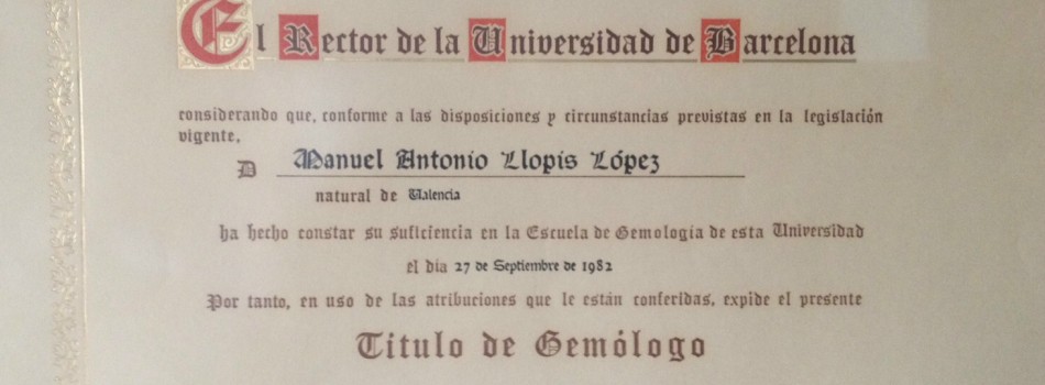 El Dr. Bosch, persona muy entrañable y querida, me hizo entrega de mi Título de Gemólogo en Valencia en los salones del Hotel Astoria, por allá por octubre de 1982.