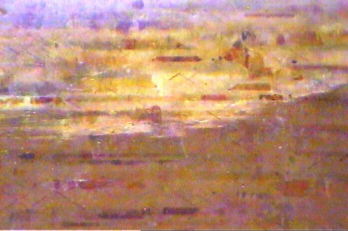 Laminas finas paralelas de hematite, así como inclusiones aciculares cruzadas e individuales. Luz reflejada. 70X