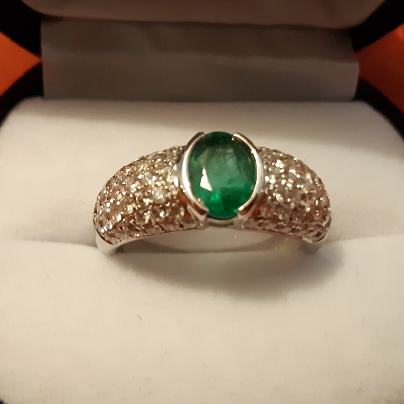 Sortija con esmeralda central y pavé de diamantes.