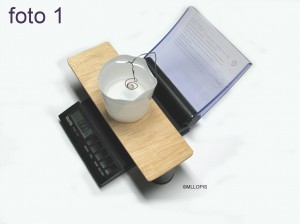 Foto 2 Quilatero convencional acoplado a Balanza Hidrostática. Vaso desechable, alambre, chapa, carretes