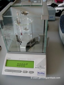 Ejemplo de balanza hidrostática profesional en nuestro laboratorio. Es de la firma Mettler el modelo Toledo.