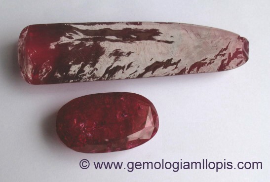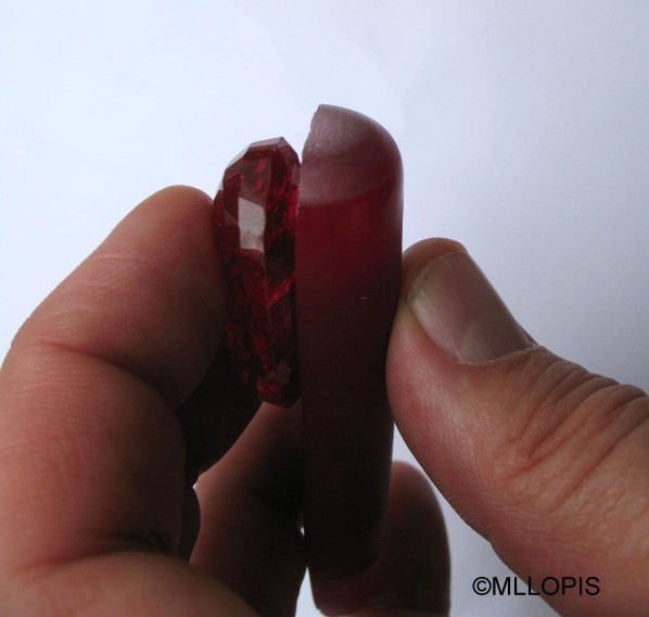 Rubi sintético de verneuil craquelado, obtenido de una bola resquebrajada.