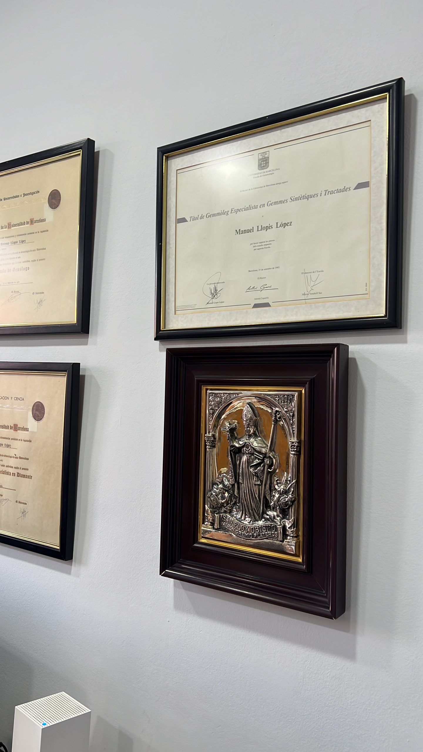 Mi querida amiga y colega gemóloga Maria José Garrigós ha donado a nuestro laboratorio un cuadro con la figura en relieve enmarcada de San Eloy, Patrón del Gremio de Plateros y Joyeros.