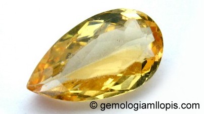 El topacio tenía muy buena transparencia y “vida”. El color, según el patrón de colores del GIA, lo clasificamos como “oY 4/4”, amarillo anaranjado de tono claro medio y saturación moderadamente fuerte.