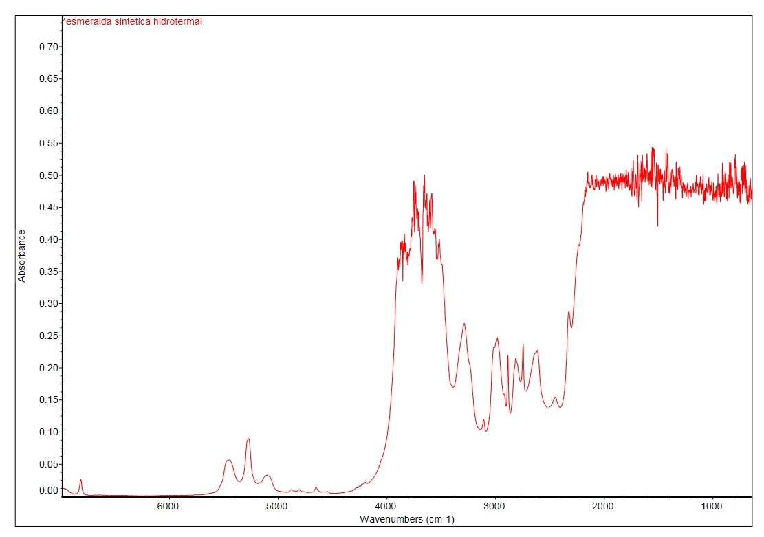 Gráfica del espectro de infrarrojos de una esmeralda sintetizada por el método hidrotermal.