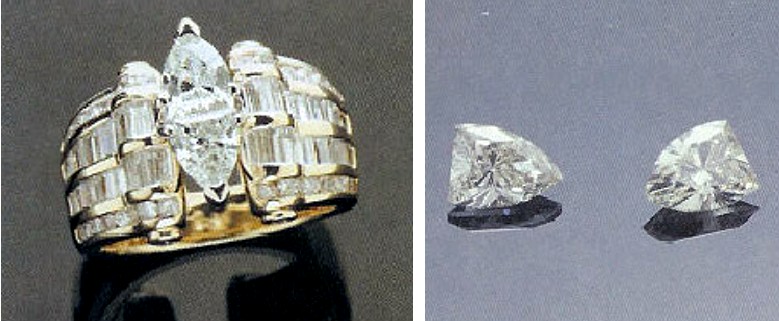 - Los que te hacen ver una piedra de cierto tamaño, cuando en realidad es la combinación de varias mas pequeñas, que en su conjunto tienen menos valor que la que quieren imitar. Se utiliza mucho con diamantes.