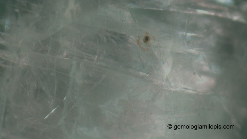 La inclusiones que presenta nuestro ejemplar son plumas formadas por líquidos o fluidos, fisuras internas que pueden ser exfoliaciones incipientes y una inclusión sólida negra.