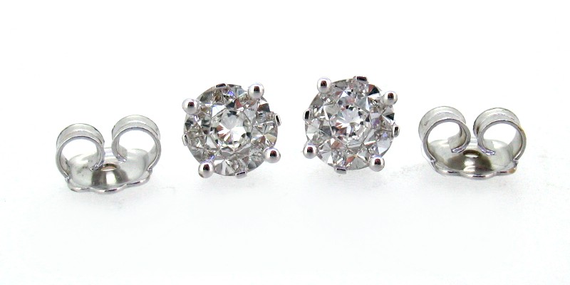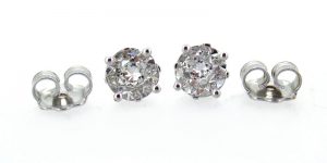Nos visita un cliente que ha comprado en una joyería un juego de pendientes y sortija para su mujer. Pendientes tipo dormilón de garras y una sortija solitario de igual montura con unos supuestos diamantes de talla brillante, todo en oro blanco de ley de 18 quilates. Le indica el joyero que se lo ofrece a muy buen precio y que son piedras de 0,70 ct. cada una. El cliente le pide un informe o algún documento que explique qué es lo que ha comprado, pesos, medidas, color pureza, etc. El joyero parece ser que lo pide a su proveedor , pero el informe nunca llega, por lo que el cliente se informa por Internet y contacta con nosotros y nos visita para que le hagamos un informe de lo que ha comprado.