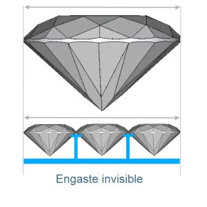 Este es un esquema de como van engastadas las piedras con una estructura de railes desde abajo, son como grapas que se cojen a unas ranuras que previamente hay que hacer a los diamantes por debajo del filetín.
