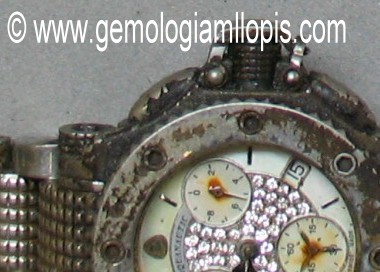 Su ilusión se esfumó cuando le dijimos que se trata de carburo de silicio que se sintetiza en grandes cantidades debido a sus cualidades como abrasivo. El carburo de silicio o carborundo también es moisanita. Por eso un tester antiguo de diamante da positivo, ya que tienen muy parecida conductividad térmica. Un tester moderno para diamante y moisanita lo detecta perfectamente como moisanita.