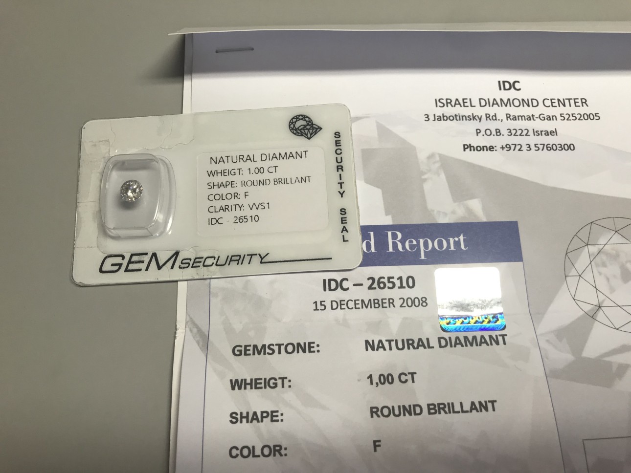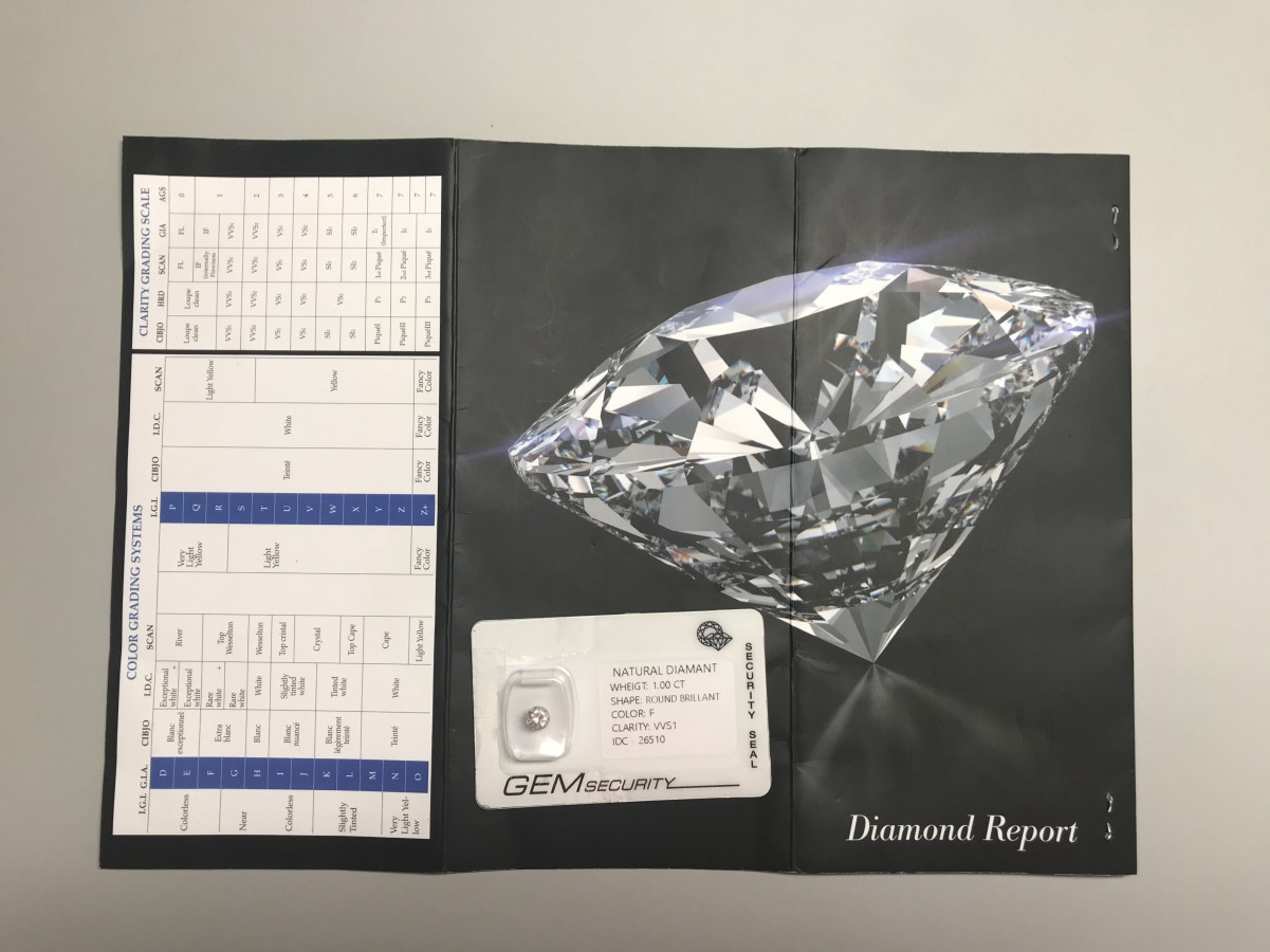 Nos llega una pareja de jóvenes, ella muy emocionada y él mas sereno, nos solicita la comprobación de un diamante certificado que acaban de comprar. Se van a casar, y la piedra va a servir para el anillo de pedida. Vienen de Barcelona a propósito para comprar el diamante en Valencia mediante un anuncio en Wallapop, solo tienen el teléfono del vendedor, al que no conocen absolutamente de nada. Me enseñan el certificado y la piedra precintada y procedo a examinar el certificado: