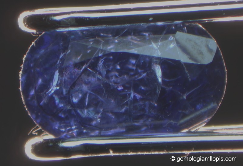 No obstante, durante la clasificación de un lote de zafiros hemos encontramos un zafiro sintético que había sido sometido a este tratamiento. Este zafiro sintetizado por el método de fusión a la llama había sido craquelado y las fracturas rellanadas con una sustancia de color azul probablemente con la intención de conseguir un parecido mejor con las fracturas parcialmente selladas que podemos ver en muchos zafiros naturales. La identificación de estos zafiros sintéticos craquelados no presenta ninguna dificultad si somos buenos observadores. En primer lugar, presentan las bandas curvas de color típicas de los corindones sintéticos de fusión a la llama.